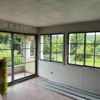 Nous avons confié la fabrication des menuiseries à notre partenaire, un fabricant français spécialisé dans les menuiseries utilisant des profils fins en aluminium de haute qualité. Ce choix de matériau permet de combiner esthétique et performance, tout en respectant les exigences des Bâtiments de France. La précision et la qualité des profils en aluminium sont essentielles pour garantir la durabilité et l'élégance des nouvelles menuiseries.